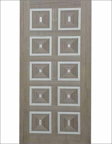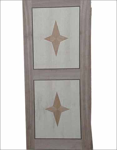 The base door is laminated with a layer of designed veneer made out of a combination of several natural veneers.